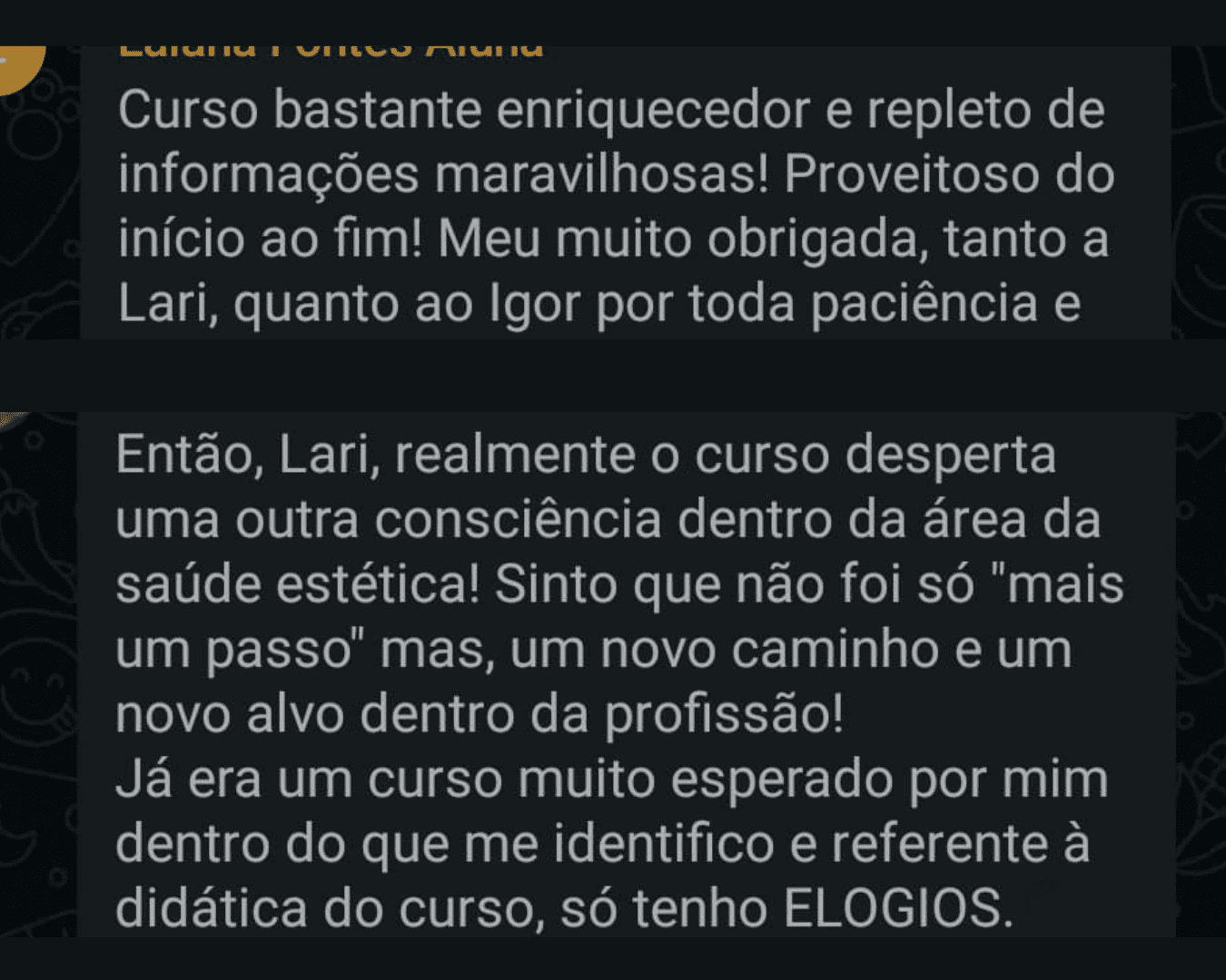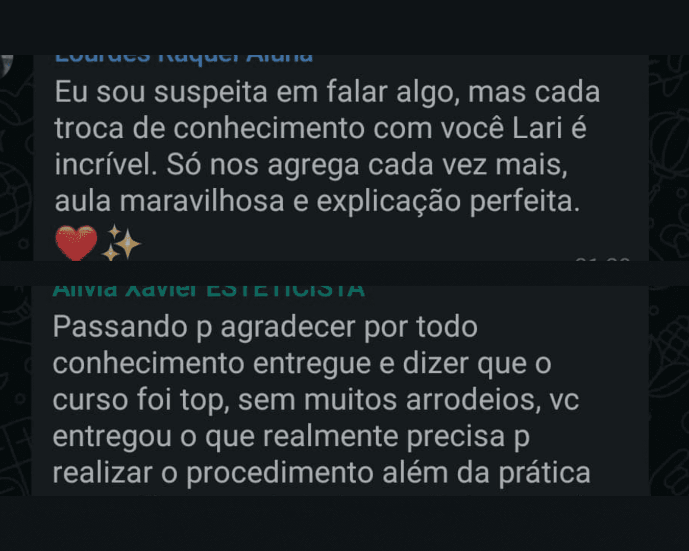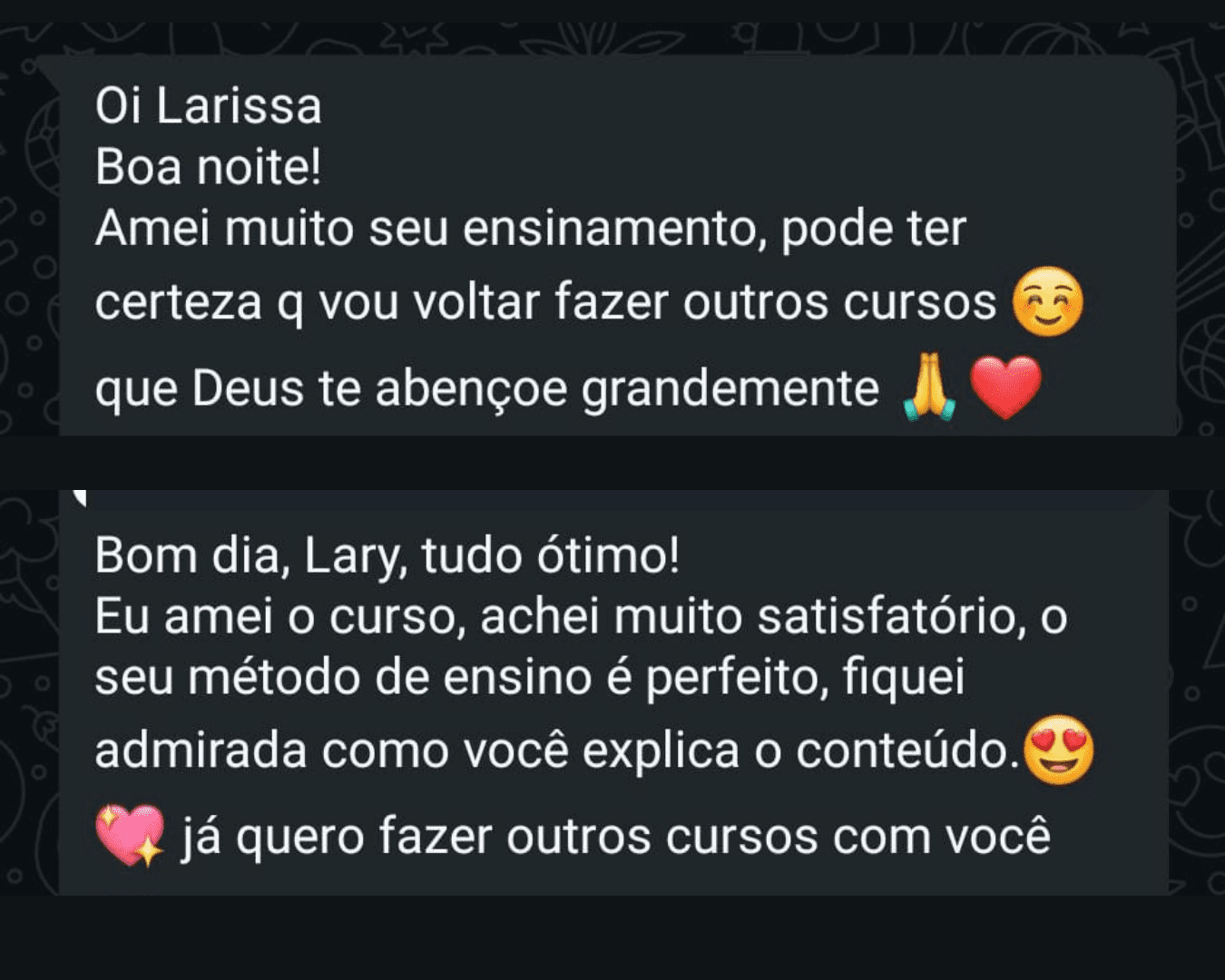 Com certeza! Você terá acesso a um suporte exclusivo via grupo no WhatsApp para tirar dúvidas diretamente com a Draª Larissa
